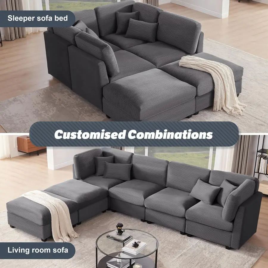 Creative Space Options Choose from beige sofas or gray sofas, easily move and rearrange into Ushape, Lshape, or sofa bed configurations. Add more modules to personalize and enhance your space with imaginative styles